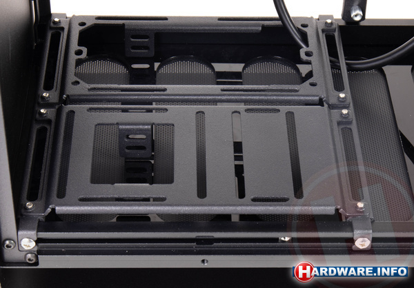 Er worden geen fans meegeleverd, waardoor je ook op dit punt alle flexibiliteit hebt. Achterin past een 92mm-ventilator, maar in de kast zelf kun je met de brackets zo'n beetje elk formaat tussen 40 en 180 mm monteren. Ook waterkoeling is mogelijk, maximaal 280 mm lang en 140 mm breed. Afhankelijk van de configuratie waar je voor gaat kun je de luchtstroom bepalen en de meegeleverde stoffilters monteren. In de meeste gevallen zul je airflow van onder en rechts naar boven, links en achter willen creëren. De boven- en onderkant hebben een geïntegreerd stoffilter, het magnetische stoffilter voor de zijkant kun je het beste monteren aan de zijde waar lucht de kast in wordt gezogen.