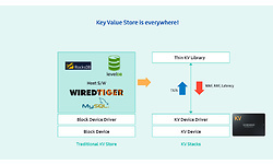 In 2019 maakte Samsung bekend dat zij een KV-ssd ontwikkeld hadden op basis van openbare standaarden. Specifiek gaat het om de Key Value Storage API Specification versie 1.0 van de Storage Networking Industry Association of SNIA. Het bijzondere aan deze schijf is dat standaard hardware zoals controllers en flash-chips wordt gebruikt, in combinatie met een Object Translation Layer die de object-id's omzet in de block-adressen van de overeenkomende bestanden. Samsung's implementatie KV Stacks moet een goed schaalbare en efficiënte oplossing zijn, waar andere systemen zoals RocksDB of MySQL vaak niet veel beter presteren op ssd's dan op traditionele draaiende schijven.