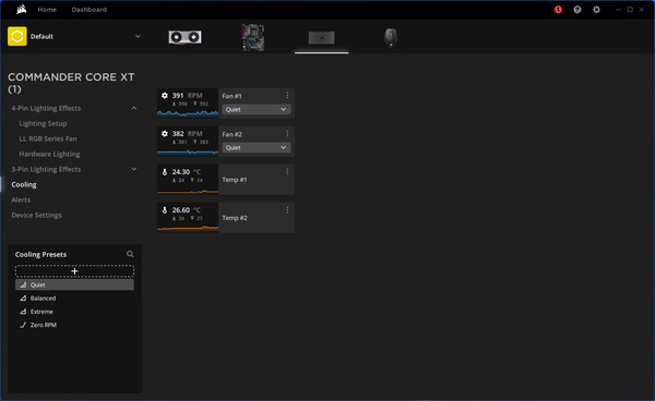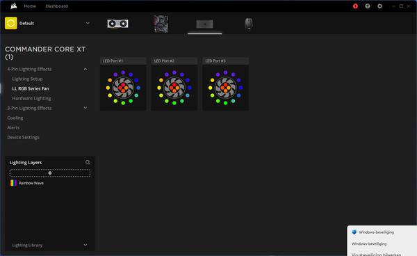 Dankzij de Commander XT kun je de koeling en verlichting van de kast instellen met iCue. De software kan wel conflicteren met software van je moederbordfabrikant.