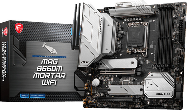 De MSI B660M Mortar Wi-Fi is een DDR5-bord in het Micro-ATX-formaat. Je betaalt er rond de 200 euro voor en voor dat geld krijg je een verrassend compleet moederbord in handen, met eigenlijk alles dat je in een modern systeem nodig hebt.