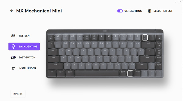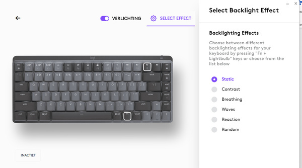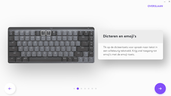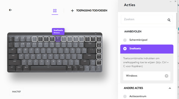 De MX Mechanical Mini werkt samen met Logitech Options+. Deze software is beschikbaar voor Windows en MacOS; een versie voor mobiele besturingssystemen bestaat helaas niet. Met Logitech Options+ kun je de functies van het keyboard beheren. Zo kun je functietoetsen aanpassen. Heb je geen emoji’s nodig maar wil je bijvoorbeeld een macro kunnen gebruiken, dan is dat mogelijk. Je kunt kiezen uit bestaande functies, macro’s en toepassingen. Dat is handig als je vaak hetzelfde programma gebruikt, want zo kun je het met een druk op de knop in beeld toveren.