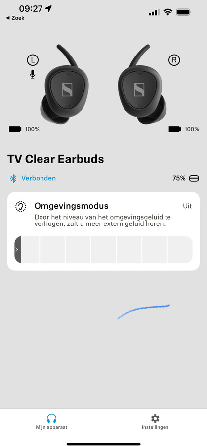 De mate van ruisonderdrukking kun je instellen via de app.