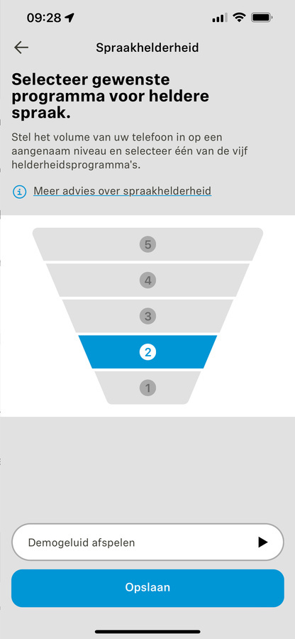 Er is spraakversterking op vijf niveaus.