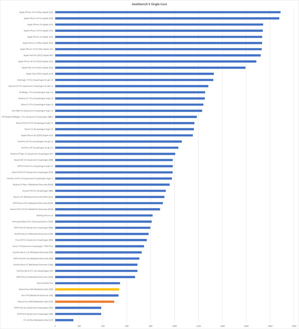 | Xiaomi POCO M5 (Mediatek Helio G99) | 537 |