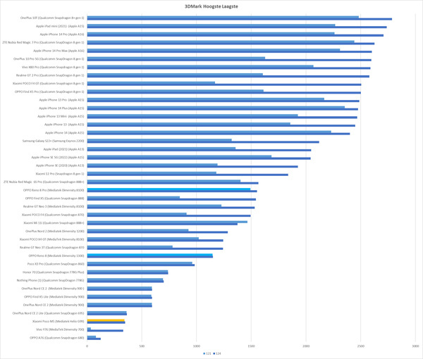 Benchmarks: 3DMark Wild Life Extreme Stress Test (Hoog/Laag)