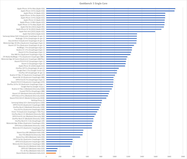 | Xiaomi Redmi A1 (Mediatek Helio A22) | 141 |