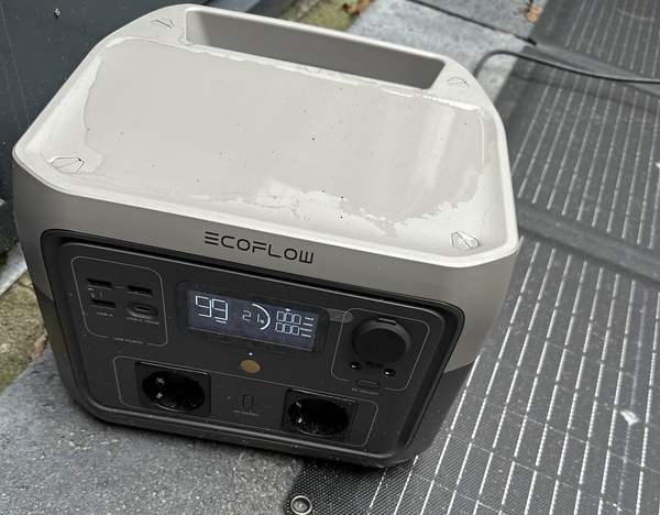 De River 2 Max is een powerstation met een capaciteit van 512Wh. Het bijna kubusvormige apparaat weegt zes kilo en heeft een handgreep. Je kunt het via een zonnepaneel opladen. Daarbij is de tijdsduur die benodigd is om hem te vullen afhankelijk van de hoeveelheid zonlicht. De zon was de afgelopen weken voornamelijk achter de wolken te vinden, dus kon het zonnepaneel zijn werk minder goed doen. Je kunt de River 2 Max echter ook gewoon via het stopcontact vullen. In dat laatste geval is hij in een uurtje gevuld.