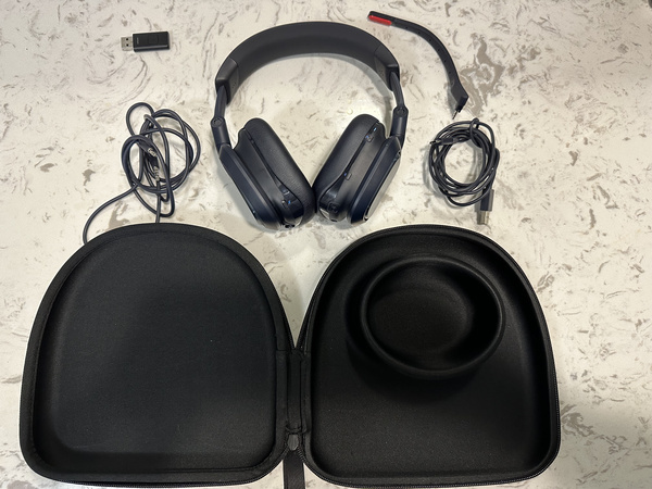 Vervolgens komt er nog een verrassing. De hoofdtelefoon wordt namelijk geleverd met een aantal accessoires. Zo vind je in de doos een USB-C-naar-A-kabeltje om de hoofdtelefoon op te kunnen laten. Daarnaast wordt een analoge kabel meegeleverd om hem via een plugje aan vrijwel ieder mogelijk afspeelapparaat te kunnen koppelen. Andere accessoires die je tegenkomt, zijn een USB-adapter en een losse microfoon.
