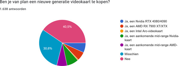 De 1.638 deelnemers zonder nieuwe generatie videokaart kregen de vraag: ben je van plan er eentje te kopen? 40,5% zei ‘nee’ en 30,6% ‘misschien’; daar komen we zo op terug.