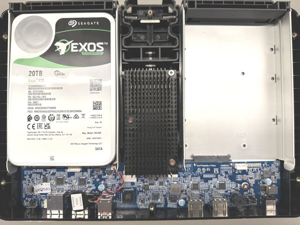 Deze generatie Celeron-chips kan tot 16GB werkgeheugen adresseren. Deze max kun je in deze QNAP-nas niet bereiken, omdat 8GB op het moederbordje is vastgesoldeerd. Uitbreiding van het werkgeheugen is dus niet mogelijk. Voor de meeste toepassingen zal die 8GB toereikend zijn. Doordat de nas passief gekoeld is, hoor je alleen het gepiep en gekraak van je harde schijven. Als je dat geluid hinderlijk vindt, kun je ook een 2,5 inch grote sata-schijf zoals bijvoorbeeld een ssd bevestigen. Hiertoe zijn gaatjes in het frame aangebracht. Een ssd is doorgaans wel duurder dan een harde schijf. Eventueel kun je een harde schijf combineren met een ssd-cache. De HS-264 is alleen geschikt voor SATA-schijven; slots voor M.2-ssd's heeft het apparaat niet.