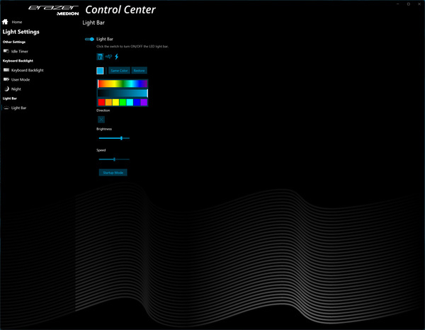 Op de machine is een control center aanwezig waarmee je de verschillende features naar je hand kunt zetten. Zo kun je de bijvoorbeeld bepalen of de machine áltijd de krachtige Nvidia- of de geïntegreerde zuinige, maar minder krachtige Intel-gpu gebruikt.