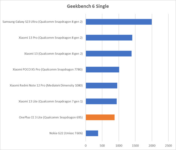 | OnePlus CE 3 Lite (Qualcomm Snapdragon 695) | 875 | |