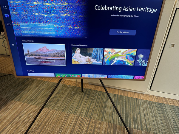 Bij de tv krijg je twee maanden gratis toegang tot de Art Store van Samsung. Hier kun je kunstwerken - van moderne kunst en klassiekers als de Mona Lisa tot bijvoorbeeld de werken van Van Gogh - downloaden. Wil je liever geen abonnement, dan kun je ook losse werken aanschaffen of je eigen beelden tonen. De digitale winkel van Samsung biedt toegang tot 1600 kunstwerken. Bij het weergeven van kunst verbruikt de tv zo'n 70 watt als we hem afregelen op een helderheid van 250 nits. Naast de kunstwerken kost het ingeschakeld houden van het toestel wel energie, daar moet je natuurlijk wel rekening mee houden. Wij zouden hem niet 24 uur per dag ingeschakeld laten en het alleen gebruiken als er mensen zijn die de kunst kunnen waarderen. Bij het weergeven van kunst verbruikt de tv zo'n 70 watt als we hem afregelen op een helderheid van 250 nits