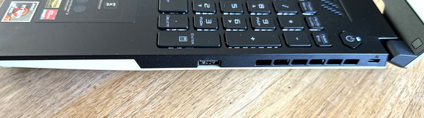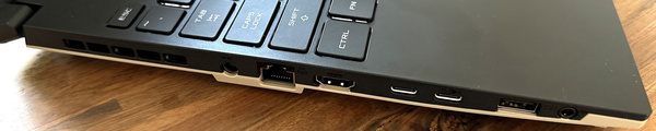 Aan de linkerkant vind je een HDMI-aansluiting, een vaste netwerkaansluiting die maximaal 1Gbit/s haalt en twee USB-C-aansluitingen die 10Gbit/s halen. Ook vind je er de headsetaansluitingen en een van de twee USB-A’s met 5Gbit/s. De tweede vind je aan de andere zijde. Er zijn dus voldoende aansluitmogelijkheden. Een dongeltje voor een toetsenbord of muis zit in dat opzicht niet direct in de weg. Wifi is geregeld via een Realtek-kaartje dat maximaal versie 6 van de standaard ondersteunt.
