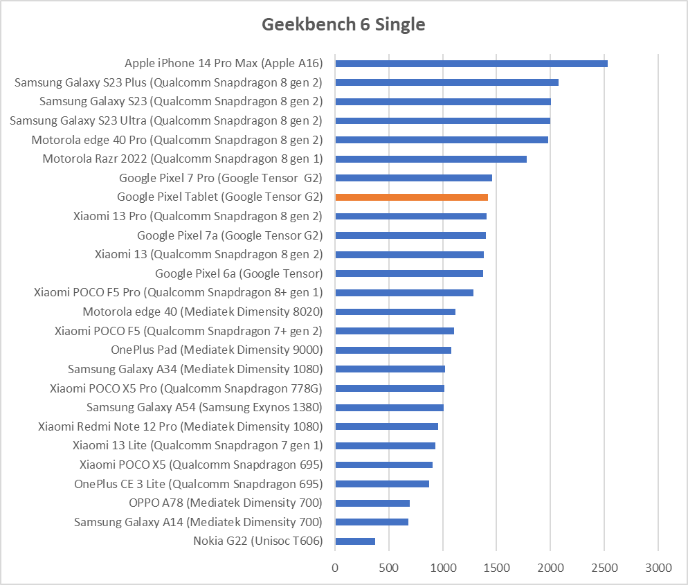 | Google Pixel Tablet (Google Tensor G2) | 1419 |