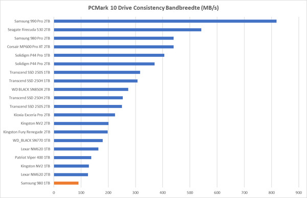 Het eindresultaat van de Samsung 980 is een tegenvaller. Het is de traagste ssd die we de afgelopen periode hebben getest.