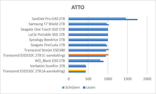 | Transcend ESD310C 2TB (C-aansluiting) | 950,35 | 1012,09 |