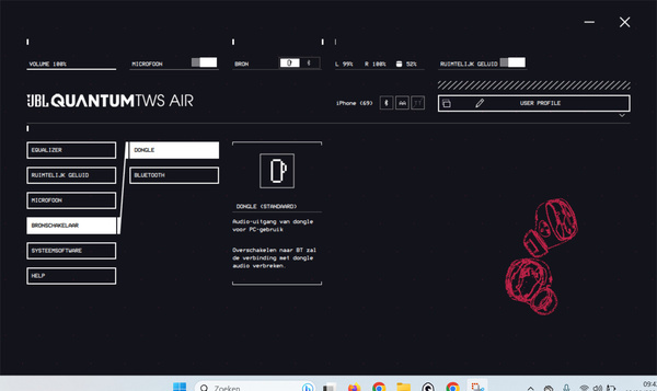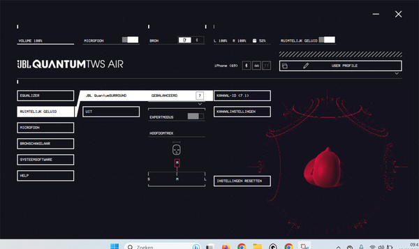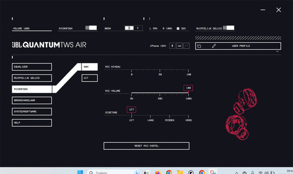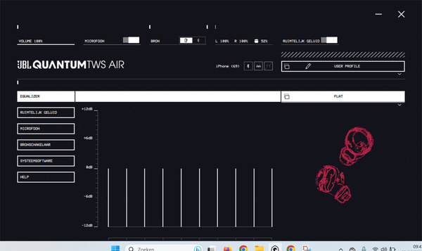 JBL levert een app voor Windows en Mac. Het is vrij uniek dat er naast een smartphone-variant ook een desktopversie beschikbaar is. Gezien de relatief lage prijs van deze oortjes is dat een flinke pre. Je kunt via de app de equalizer en microfoon instellen en Quantum-surround inschakelen.