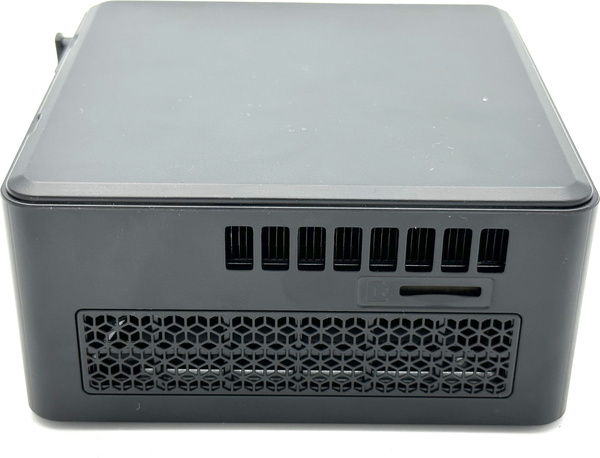 Als je het kastje voor je ziet, lijkt het als twee druppels water op de nucs op basis van een Intel-processor. Dat is niet zo gek, want net als bij een gewone desktop kun je gewoon het moederbordje omwisselen. De behuizing meet 4 x 4 inch, dat is zo'n 10 x 10cm.