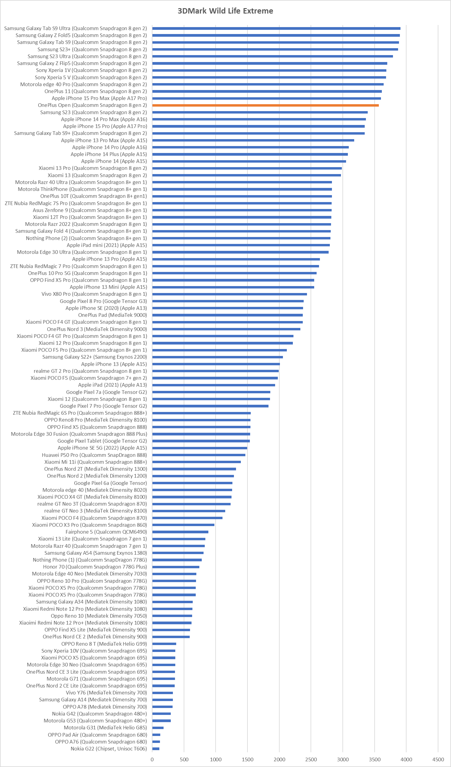 | OnePlus Open (Qualcomm Snapdragon 8 gen 2) | 3567 |