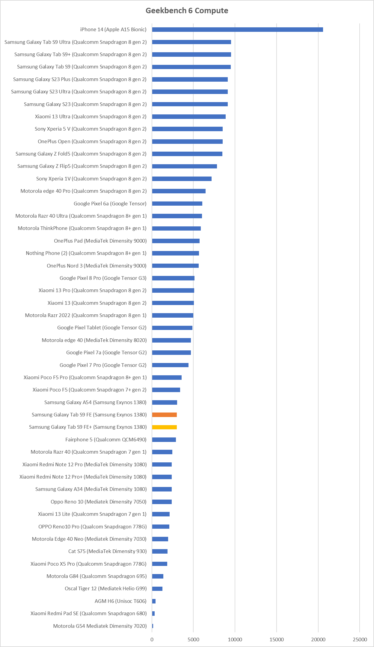 | Samsung Galaxy S23 (Qualcomm Snapdragon 8 gen 2) | 9127 |