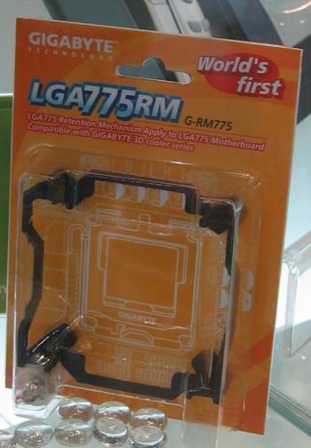 Goed nieuws voor de bezitters van de Gigabyte 3D Cooler Pro CPU-koeler: dankzij onderstaand bracket dat Gigabyte binnenkort op de markt brengt, is deze koeler ook geschikt voor de nieuwe Socket 775 processors.