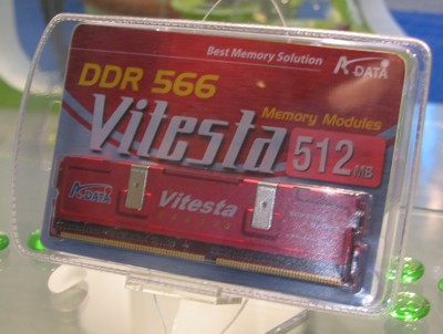 A-Data is al sinds enige tijd 'hofleverancier' als het gaat om geheugenmodules voor de testmachines in het Hardware.Info Testlab, dus een bezoekje aan hun stand mocht uiteraard niet ontbreken. Allereerst had A-Data goed nieuws voor overklokkers: voor wie zelfs DDR500 geheugen niet snel genoeg heeft, heeft de Taiwanese fabrikant nu zelfs DDR566 modules in haar assortiment! Het geheugen zal op deze manier bij overklokken absoluut niet meer de bottleneck zijn. De DDR556 zijn vanaf vrijwel direct leverbaar en worden geleverd in een nieuwe retail verpakking.