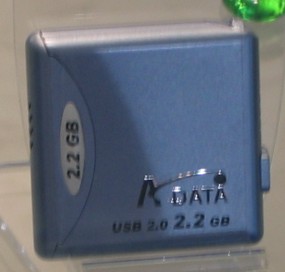 Voor wie de opslagcapaciteit van geheugensticks niet voldoende vindt, toonde A-Data ook nog een piepklein extern harddiskje. Het apparaatje van circa 4 bij 4 centimeter heeft een USB 2.0 interface en een opslagcapaciteit van 2.2 GB.