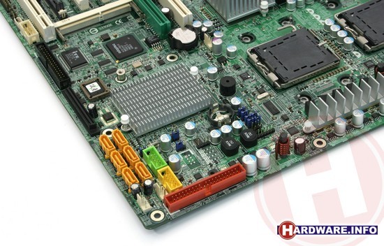 Het moederbord biedt een drietal PCI-Express x8 uitbreidingssloten en daarnaast twee keer 64-bit PCI-X en één keer normaal PCI. Bijzonder is de aanwezigheid van een Adapter AIC-7901X SCSI (320 Mbps) controller. Hoewel SCSI zeer snel terrein verliest aan diens opvolger SAS zijn er nog steeds voldoende systeembeheerders die trouw blijven aan het vertrouwde SCSI, totdat de nieuwe seriële variant zich wat langer bewezen heeft. Met behulp van een uitbreidingskaartje kan het bord wel alsnog worden voorzien van een SAS-controller. Een plek voor een dongle die de RAID-mogelijkheden van deze optionele LSI controller moet inschakelen is ook op het bord voorhanden. Intels ESB2 south bridge staat garant voor een zestal SATA-aansluitingen, inclusief software RAID 0, 1, 5 en 10.