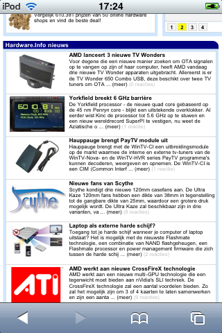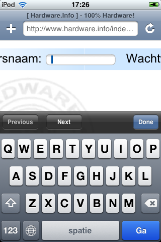 Natuurlijk zijn de meeste websites niet gemaakt om leesbaar te zijn op een relatief kleine schermpje als dat van de iPod Touch. Hier komen we echter op het punt waar de interface van Apple echt goed doordacht is. Wanneer je bij een website met je vinger twee keer tapt op een tekstkolom, zoomt de website automatisch in tot de breedte van die kolom. Veder in- of uitzoomen gaat simpelweg door twee vingers op het scherm te zetten en die van elkaar af of juist naar elkaar toe te bewegen. Scrollen is gewoon een kwestie van je vinger op het scherm zetten en een willekeurige kant op bewegen. Een link kun je volgen door er simpelweg op te drukken en wanneer je een tekstinvoervak aandrukt, verschijnt automatisch het onscreen toetsenbord weer.