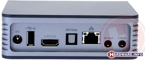 Er zijn in ieder geval twee USB-aansluitingen, zodat naast een dongle ook via USB kan worden afgespeeld. Zoals vrijwel elke mediaspeler worden via een hub aangesloten schijven moeiteloos herkend en wie wil kan op die manier dus meerdere USB-opslagapparaten aansluiten. Het is wel verstandig een USB-hub met eigen stroomvoorziening te gebruiken. Onze ervaring met 2,5 inch harde schijven, die veelal hun stroom louter via USB betrekken, is wisselend. Met name bij intensieve taken (HD video) willen spelers nogal eens moeite hebben zonder problemen hiervan af te spelen - om problemen te vermijden zouden we dan ook 3,5 inch modellen aanraden met een eigen stroomvoorziening.