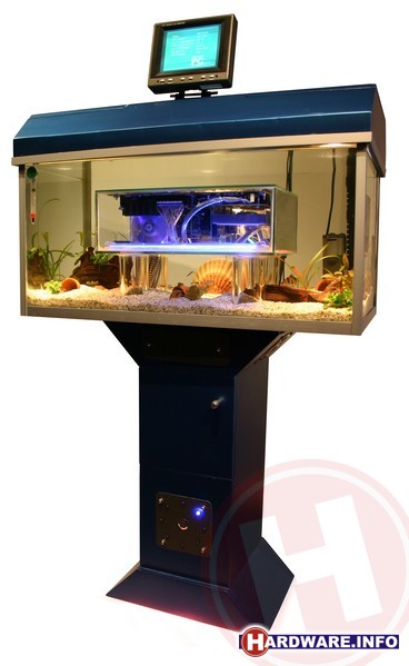 Waarschijnlijk één van de meest bizarre en vergezochte casemods is de Aquarium PC van Robert Stoppels. Zoals de naam al doet vermoeden hebben we hier te maken met een PC die binnen een heus aquarium gebouwd is. In een normaal Aquarium construeerde Robbert van glas een compacte, waterdichte, behuizing die middels holle cilinders en gaten in de bodem van het aquarium met de buitenwereld verbonden is. In de glazen bak gaat een fileserver op basis van een Intel Celeron processor schuil. De Aquarium PC staat op een zelfgemaakte voet waarin onder andere de optische drive en de voeding zijn ondergebracht. Bovenop het aquarium vinden we ten slotte een LCD scherm waarop de belangrijkste systeemgegevens uit te lezen zijn. En wat mag er niet ontbreken in elk zelfrespecterend aquarium? Juist, de vissen. Zo'n twintig vissen hebben dan ook hun onderkomen gevonden in deze bak die tot de nok toe gevuld is met water. Elektronica en water gaan niet samen? Deze opzienbarende casemod laat zien van wel!