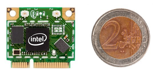 Om kleine laptops te faciliteren heeft Intel haar wireless modules een stuk kleiner gemaakt, zoals ook te zien op onderstaande afbeelding. Overigens was ook de WiFi Link 5100 uit de vorige generatie al in dit kleine Half Mini Card formaat verkrijgbaar.