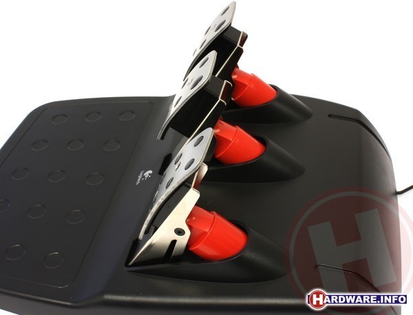 De pedalen voor je voeten verschillen niet veel met die van de G25 en hebben dezelfde weerstand. Wel een verschil is de mogelijk om de plaatjes een stuk naar links of naar rechts te verplaatsen. Dit geeft de mogelijkheid om de pedalen verder uit elkaar te plaatsen of juist dichter naar elkaar toe te brengen. Door twee schroefjes los te halen met een inbus sleutel kan je ze in een handomdraai verplaatsen.