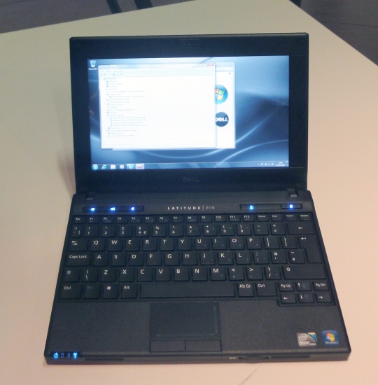 Dell is niet alleen actief op het gebied van apparatuur, het bedrijf levert ook complete oplossingen voor diverse sectoren. Een daarvan is het onderwijs: met de Dell Connected Classroom biedt het merk een geïntegreerd product voor virtuele klassen, inclusief 360 graden videoregistratie en de mogelijkheid een complete desktopomgeving van een docentencomputer te versturen naar de notebook van een leerling of student. Een onderdeel van de hardware is de speciaal voor dit doel ontwikkelde Latitude 2110, een netbook op basis van de Intel Atom N450 op 1,83 GHz (1,6 GHz op accu), maar wel een bijzondere.