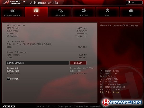 ASUS Maximus IV Extreme - BIOS screenshots