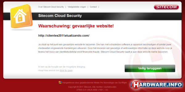 Uiteraard hebben we de nieuwe functionaliteit ook aan de tand gevoeld. Een standaard testmethode ervoor hebben we (nog) niet, maar we kunnen je wel onze ervaring doorgeven. Binnenkomend verkeer op poort 80 (http-protocol dus) wordt met cloud security ingeschakeld gelimiteerd tot 50 Mbit/s. Een hogere snelheid is niet mogelijk, hoofdzakelijk vanwege de beperkte processorkracht. De processor is voldoende krachtig om je een vloeiende internetervaring te geven. We kregen niet het idee dat pagina’s langzamer geladen werden op het moment dat cloud security ingeschakeld was. Die mogelijkheid bestaat wel als de servers van Surfright de vraag niet meer kunnen bijbenen. Sitecom stelt echter dat er direct extra capaciteit geregeld wordt indien dat nodig is.