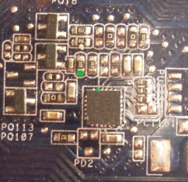 Als je het juiste IC met de FB pin gevonden hebt is het tijd om te achterhalen welke weerstand je eraan moet solderen, maar ook de locatie van de FB-ping vast te stellen. Op een IC zit altijd een kleine inkeping of een klein rondje in een hoek. Samen met de datasheet kun je zo achterhalen welke pin de FB-pin is op je videokaart. Als dit gelukt is kun je daarna met je multimeter de weerstand meten die aan de FB pin zit. Deze kun je meten door met je rode pen op de FB pin te prikken en je zwarte op een willekeurige ground. Alvorens dit te meten, is het handig om je multimeter in te stellen op 100K Ohm. Als je dan niks meet zet je de multimeter een stapje omlaag, totdat je een waarde krijgt die klopt.