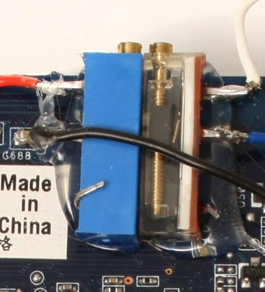 Twee geïmplementeerde potmeters, één voor GPU-voltage en één voor geheugenvoltage.
