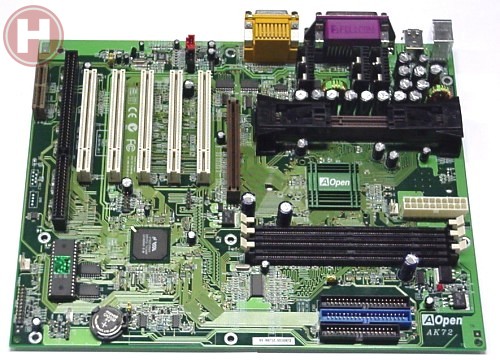 De AOpen AK72 lag, zoals al gezegd, hier al een hele tijd klaar voor de test. De indeling van het moederbord is, net als alle andere moederbord op de ABIT KA7 na: 1x AGP, 5x PCI, 1x ISA, 1x AMR en 3x DIMM. Voor degenen die niet veel eisen stellen aan hun geluidskaart, herbergt de AK72 ook onboard software audio.