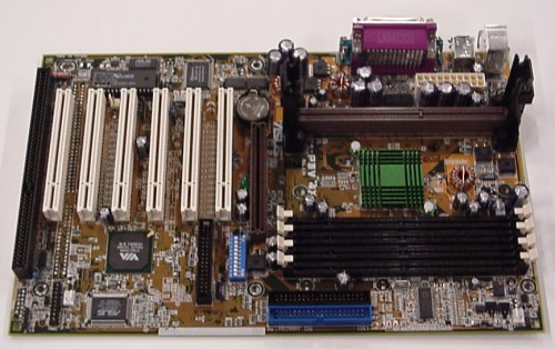 Uiteraard heeft ook marktleider ASUS een VIA Apollo Pro 133A moederbord in zijn assortiment. De P3V4X heeft net als beide voorgaande moederborden een Slot 1 connector voor de CPU. Het bord is te zien op de volgende foto: