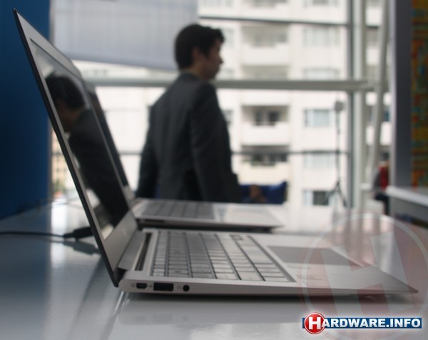 De UX21 is de enige 11,6" Ultrabook die op IDF getoond wordt en daarmee is de machine kleiner dan de andere exemplaren. De resolutie van het scherm is 1366x768, opnieuw niet extreem hoog, maar bij 11,6" is dat minder erg dan bij 13,3". Op het dikste punt meet de UX21 1,7 centimer. Onze weegschaal slaat uit naar 1,07 kilo.