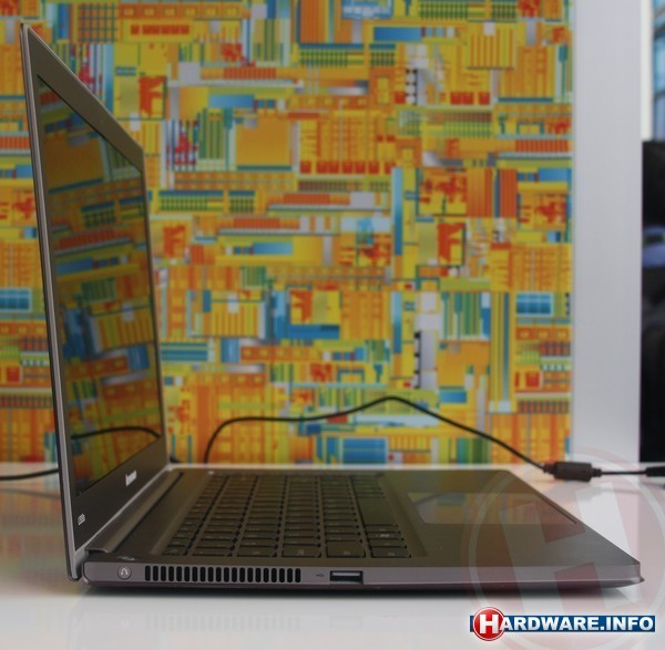 De vierde Ultrabook die Intel toont is de Lenovo U300S. Ook deze machine is grotendeels van plastic gemaakt, maar voelt desalniettemin zeer degelijk aan. Vanwege de rechte hoeken lijkt deze Lenovo dikker dan de andere Ultrabooks, maar schijnt bedriegt: met een maximale dikte van 1,6 cm is het zelfs de één na dunste! Het gewicht van de U300S bedraagt 1,23 kg.