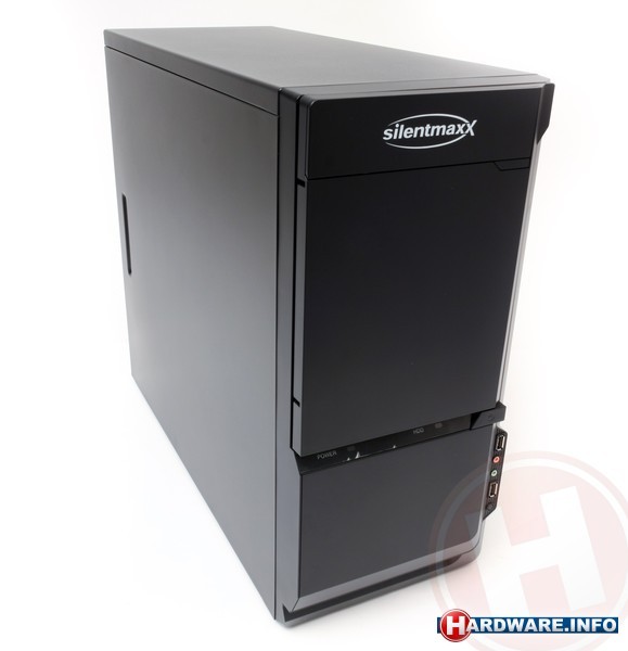 Van het Duitse Silentmaxx ontvingen we de ITA-2767 Rev 2.0 midi-tower, die ten tijde van de test gemiddeld 70 euro kostte, maar inmiddels niet meer leverbaar is. De kast is gemaakt van erg dun staal en weegt slechts 7 kilo. Hij komt niet echt solide over, wat in schril contrast staat met eerdere behuizingen die we van dit merk testten. Aan de voorkant van de kast vinden we twee USB 2.0-poorten, naast de bekende headset- en microfoonaansluitingen.