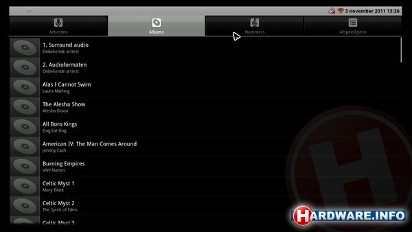 Voor muziek is de app iets beter, het voornaamste bezwaar hier is dat de ‘embedded’ hoesafbeeldingen net zo min als de folder jpg-afbeeldingen herkend worden, zodat de collectie er saaier dan nodig uitziet. Volgens AC Ryan zou dit ondersteund moeten worden op lokale media (USB en SD-kaart), maar wij kregen het niet aan de praat met onze standaardbibliotheek, die op andere spelers keurig wordt weergegeven. AC Ryan is aan het werk om dit te verbeteren, inclusief ondersteuning voor cover art op netwerklocaties.