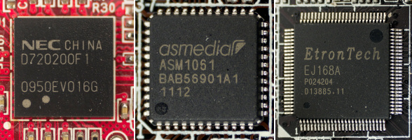 USB 3.0 controllers van NEC/Renesas, ASMedia en Etron.