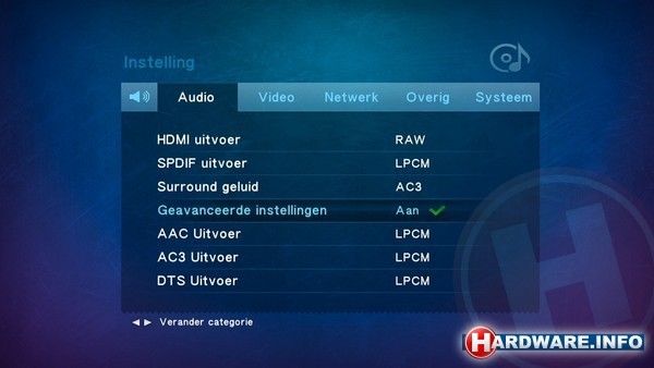 In het instellingenscherm kan veel worden aangepast, zeker op audiogebied, al hebben we het nog wel eens uitgebreider gezien. Alle wenselijke opties zijn echter voorhanden. Voor wie geen TrueHD-decoder heeft, is er een optie dat signaal intern te downmixen naar AC3 ofwel Dolby Digital. De speler kan het namelijk niet zelf decoderen (iets waar we later in deze review op terugkomen), wat vermoedelijk een licentiekwestie is.