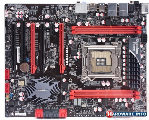 Ook van Foxconn ontvingen we een high-end X79-moederbord, in de Quantum Force reeks. De prijs van de Quantumian blijft echter een onbekende: het is het enige bord in deze test dat in Nederland nergens te koop is.