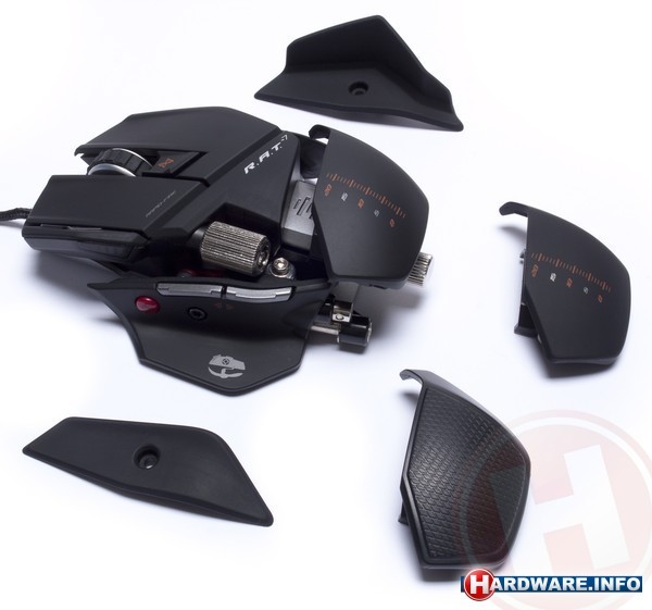 We kijken naar een van de eerste modellen van het merk Cyborg, de R.A.T. 7. Deze is voor een groot deel aan te passen aan de hand. Met drie zijstukken voor de pink en drie voor de handpalm is de vorm aan te passen en de linkerkant is kantelbaar en te verschuiven. Aan de achterkant kunnen vijf gewichtjes van 5,5 gram geplaatst worden, waarmee de muis tot 180 gram verzwaard kan worden.