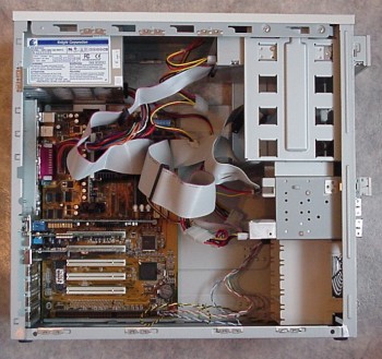 De 3½" drives worden in een bracket bevestigd met schroeven. Deze bracket is net als alle 5¼" drives via het 'sleeprincipe' aan de voorkant van de kast te verwijderen.